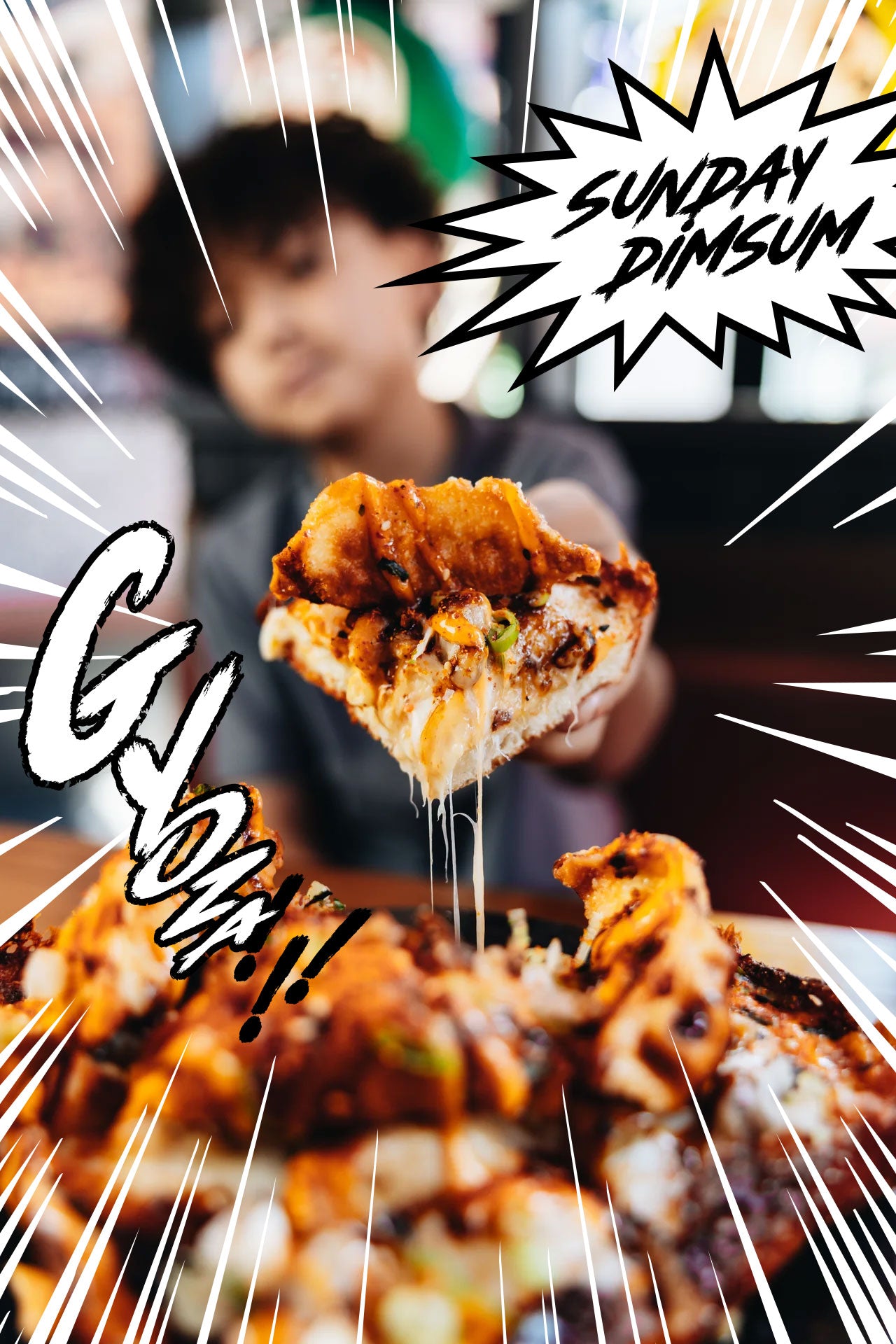 We offer pork, chicken, pork & shrimp, veggie, wagyu & truffle beef, and peking duck.
